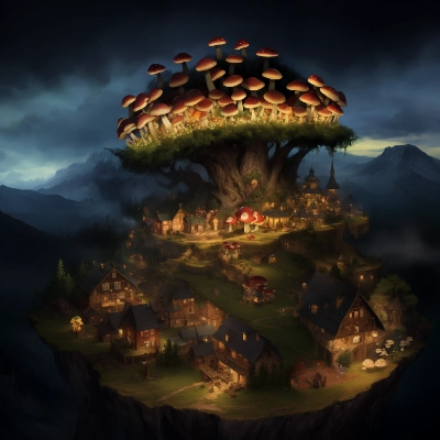 masterpiece, best quality, high resolution, ultra-detailed, cinematic lighting, Dry land. Beyond the spreading forest, an incarnation of an elephant as big as a mountain. The king of the savanna appears. Huge legs and tusks. Bigger than the trees in the forest. A herd of ordinary elephants walks in front of the forest. Many birds are flying in the sky. Vast depths. detailed background, perfect anatomy, <lora:add_detail:0.6>