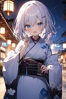(extraordinary, best beauty, new, best quality, highly detailed), best beauty, new, best quality, highly detailed) Age: 16 years old, female, ponytail, navy blue hair, light blue eyes, (gray jacket and two belt chests connected), (navel of black T-shirt), exposed), navy blue belted skirt, navy socks, thigh belt, black shoes, headphones, (flat chest) ), (midnight in the woods), (full moon), fireflies are flying around.