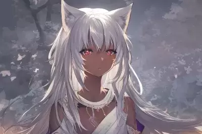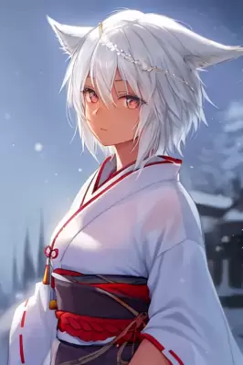 fireworks, (depth of field)++, (masterpiece)+, hyperrealistic, (novel illustration)++, (brave female)+, (solo)+++, (dark-skinned girl)+, (fox ears)+, (white hair)++, short hair, (simple Japanese kimono)++, see-through, (detailed face)+, (beautiful detailed eyes)++, small chest, sharp eyes,