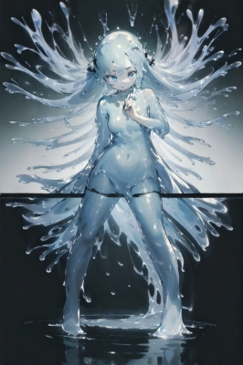 realistic, super photo realistic illustration, highres, ultla detailed, absurdres,best quality, (masterpiece:1.5),(ultra-detailed), (high quality:1.3),(high resolution),(sense of depth:1.5)ultra-detailed, hard rim lighting,((dramatic lighting)),sharp focus,BREAK(((see-through slime (((((((girl))))))) with no color))),((((((clear water))))))),((((((highly transparent water)))))),small breasts,(((((highly transparent skin))))),(((((((wind))))))),((majestic forest))BREAK(((((((((splash))))))))),outdoor,((((((((((masterpiece)))))))))),((((((((fine hair)))))))),(lens 135mm f1.8),((((water reflection)))),(((drop:0.9))),(dof),(bubble:0.9),upper bodyBREAK((Hadouken)),((Kamehameha)),((fighting stance:1.5)),(attacking:1.5),(vigorous movement:1.5),(war:1.4),(commoner:1.5),Fantasy world,wakameBREAK((kawaii girl)),(loli:1.3),solo, one girl,(random hair color),(random eye color),(random hairstyles),dress oneself stylishly,upskirt,shorts trousers,mini skirt,(black thigh-highs),delicate clothes wrinkles,medium Large breast,eyeliner,(zettai ryouiki),wakameBREAKLens Flare,Glow,Slow Motion,(Motion Graphics:1.5),(Neon light effect),Particle,(colorful:1.5), blooming light effect,kaleidoscopic views,natural lenses,particle,colorful refraction,BREAK(dieselpunk),(Lunarpunk:1.3),cyber punk,BREAK((maximalism:1.5), vivid contrast,interconnectedness of nature,distorted reality,suspended moments,ephemeral glimpsesBREAK(dynamic angle),high angle full body shot