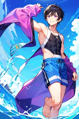 裸足の男性達その2です。(服着衣版・参考リンク参照)投稿にあたっては、いきなり男性の上半身裸を見たくない人もいるかもしれない…という謎配慮で、トップイラストは水着着用イラストにしました。 2枚目からが上半身裸、その他上半身の肉付きが分かるイラスト、乳首が見えているイラストになります。何枚か裸足ではないイラストもありますが、同プロンプトから出たイラストのボツ救済ということで! 本当は前回の1作で終わる予定でしたが、イラストを見返している中、2枚目のイラストを見て「これは自分でもイラスト描く時の参考資料になりそうだな…!!」と思ったので、上半身裸のイラストを分けて投稿してみることにしました。 自分は一応絵描きの末端なのですが、その絵描きの中で、 「マッチョと細身の真ん中ぐらいの、たくましい男性の上半身裸の資料が見つからない!!」 という悩みがあったのですが、今回のお題のおかげで偶然解消されましたー。服を着ているイラストでも、体格を把握して描くために上半身裸の資料は必要なので!!(切実) もしこの投稿を見た人で、こういうイラストがある方、是非投稿して下さい。お願いします!! モデルは1.2枚目blue_pencil、3枚目以降ちちぷい生成(SE_V4_B)です。ちちぷい生成でも、こういうイラスト生成できるんだという発見がありました。 この投稿のきっかけとなった2枚目が特にちょうどいい肉付きのバランスのイラストで気に入っていますが、浮き輪の腕が~。(涙) 今まで男性の乳首イラストを投稿して大丈夫なのか分からなかったですが、このイラストに何事もなければOKということで! 今回の投稿では、自分がAIイラストを投稿する意味を改めて感じられてよかったかなと思います。 皆さんの創作資料になれば幸いです!!参考資料にしてOKなので、どんどんイラストも描いて下さいー。