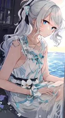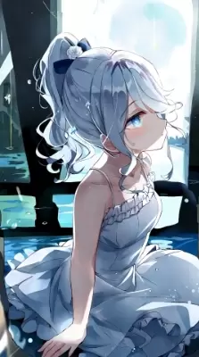 (masterpiece:1.5), (best quality:1.2), high quality, absurdres, 1girl, close up, sleeping bed, lie down, pillow, perfect face, blush, [:light blue eye:0.4], beautiful detailed eyes, white hair, swept bangs, wavy hair, middle hair, cute night clothes, bedroom, vivid, dynamic lighting, shadow, window shade, light particle
