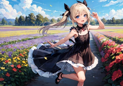 very cute loli,8 yo,flat chest,blonde hair,twintails,(Japanese yukata,very beautiful yukata,strawberry printed yukata,dressing yukata:1.2),yukata sash,happy,very beautiful sunset,sitting,engawa,japanese veranda,