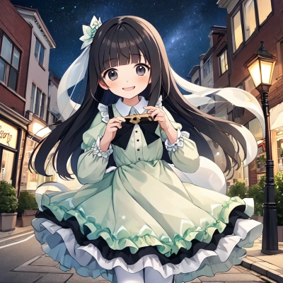 Ph’nglui mglw’nafh Cthulhu R’lyeh wgah’nagl fhtagn, ( masterpiece, best quality, super fine illustration,realistic, ultra high res, Ultra Detailed, high quality background:1.2), dynamic lighting, dramatic lighting, <lora:add_detail:0.2>, very wide shot, depth of field, landscape, dynamic angle, dutch angle, cinematic lighting,street,city,manga,street,building,black hair, smile, (((Long Hair))),straight Hair,hair ribbon,mintgreen stripe,Black Eyes,flat chest,straight Across bangs,princess Cut, Very Long Sideburn,roundry Head,Droping eyes,cute,Meekness,Bob Cut,long back hair,12 years Old,loli,flower print,,distant view