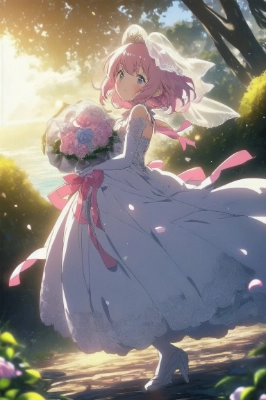 (((a beautiful detailed girl in Washitsu))), amazing, dutch_angle, look_up_to, (((holding a bouquet))), petite, girl,woman,female, little,child,15 years old, long hair, ponytail, gold hair, big hair, (((cute anime face))), ^_^, parted_lips, (((delicate hands))), small_breasts, elbow_gloves, wedding dress, The sun shines through the trees, wedding, church, (((ocean))), gorgeous garden, colorful flowers, wind, girl blowing in the wind, full body, top angle, extremely detailed CG unity 8k wallpaper,