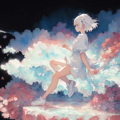 (kawaii background:1.3), (extremely detailed fine touch:1.3), (hard light, studio light, light rays, dappled light, reflection, shadows, ray tracing:1.0), ///, kawaii girl, light blonde short hair, side ponytail, fashion, black tights, (upper body:1.3), (Wide meadow hills, horizon, blue sky, white clouds, long road to nowhere, beautiful scenery, nature, flowers, trees:1.3), (zentangle:1.3)