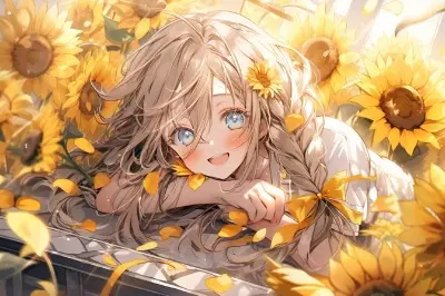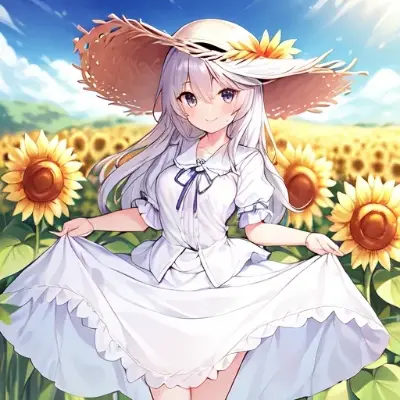 ひまわりが小さいのか、少女が大きいのか、遠近法なのか