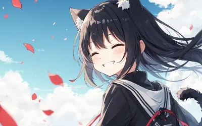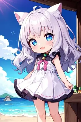 海辺の家に猫ちゃんと遊びにきているベルちゃん