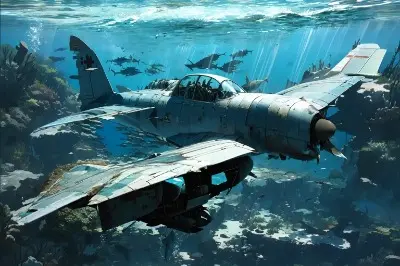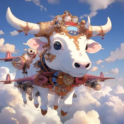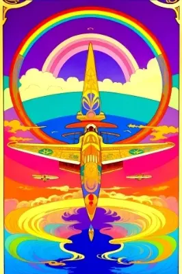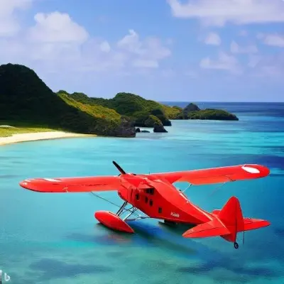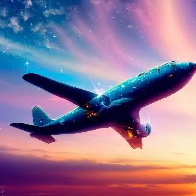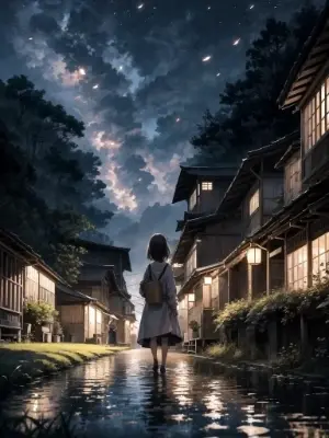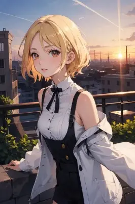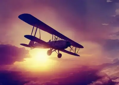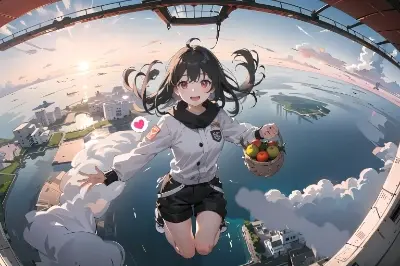 朝日の中、果物セットを持ち、ウキウキしながら、飛行機から飛び降りてみた