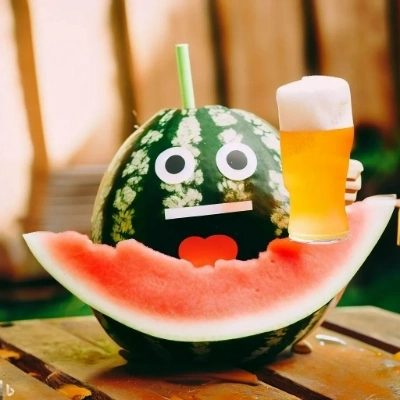 Watermelon is drinking beer in the beer garden