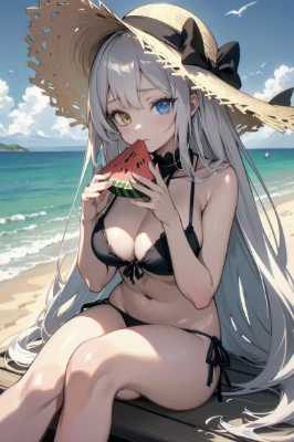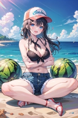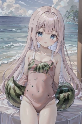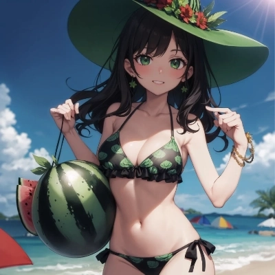 スイカと水着の女の子