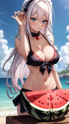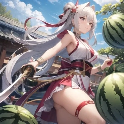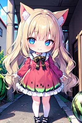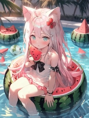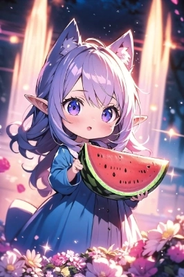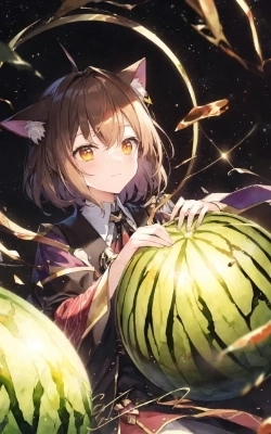 スイカを頬張る猫耳娘