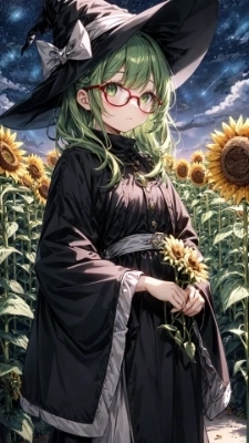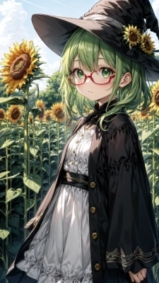 ひまわりと緑髪のお姉さん
