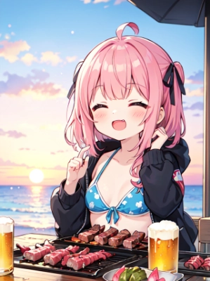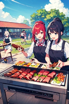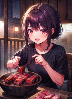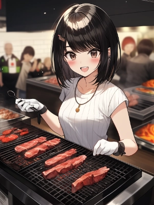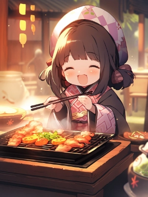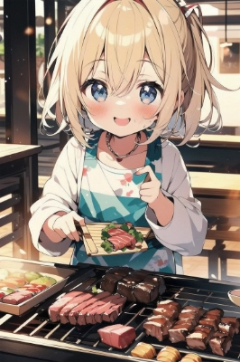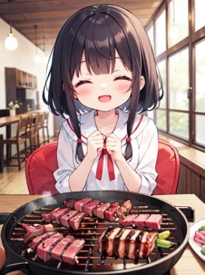 良い肉の焼き肉に喜び叫ぶ(あほの子)