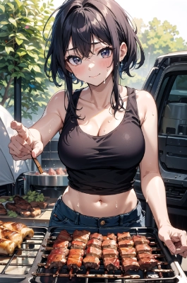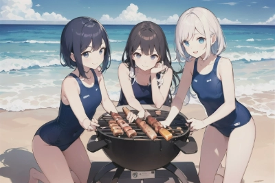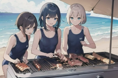 臨海学校でバーベキュー大会① (毎月29日はスク水の日)