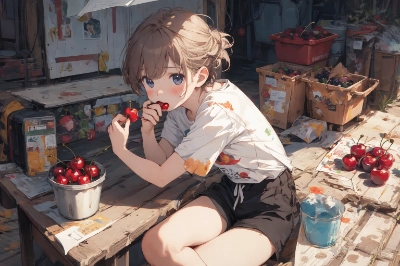 描きかけ(チェリーと美少女)