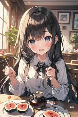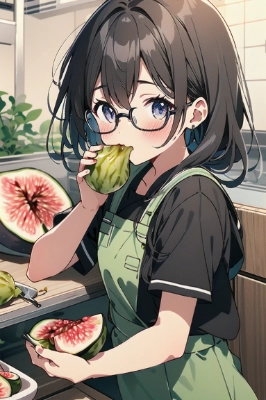 いちじくを美味しそうに食べるメガネの女の子 パート3