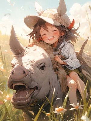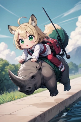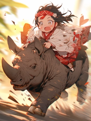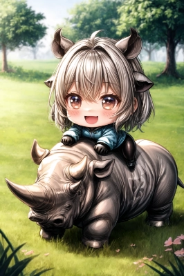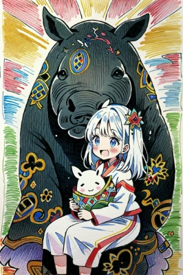 サイに乗る少女(niji ver.)