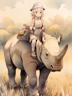 サイに乗る少女