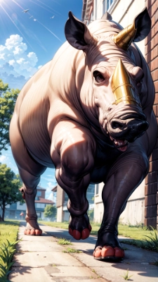 防具を着たサイ