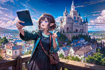 「夜のノイシュバンシュタイン城、ビールを添えて」