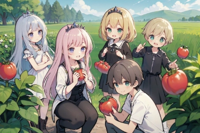 お姫様達とトマトを収穫