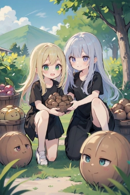 収穫に祝うチビ達