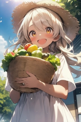 畑「を」収穫するキッチンメイド