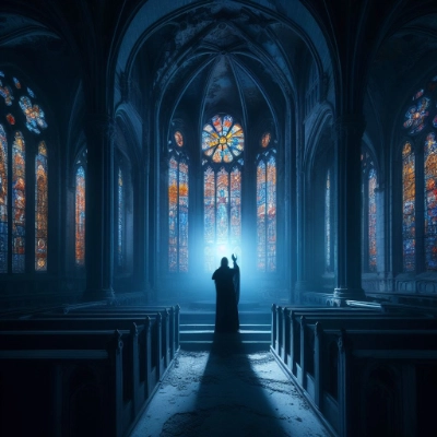 月明かりに照らされた廃聖堂
