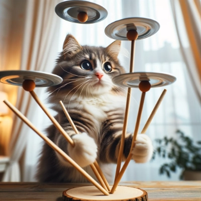 皿回しをする猫