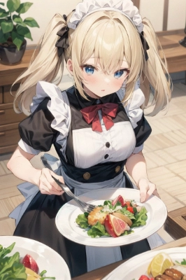 お皿を運ぶメイドさん♪