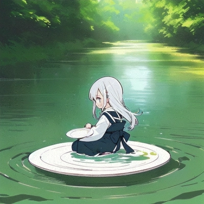 川でお皿がサラサラと…