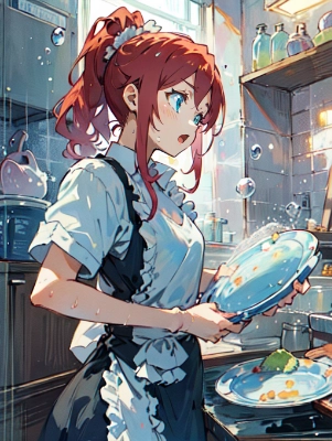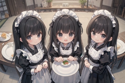 お皿とメイドさん