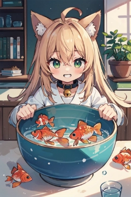師匠、金魚がおとなしく金魚鉢に入ってくれません!