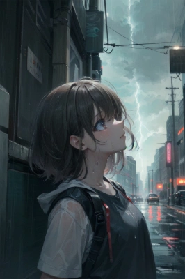 No.854 雷雨でずぶ濡れの女の子