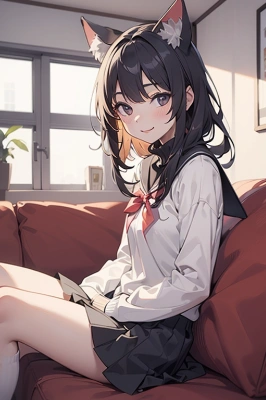 cute eye、愛華 「ホワイトニットとミニスカ」
