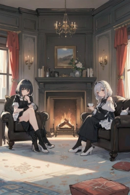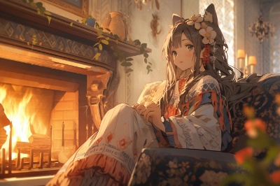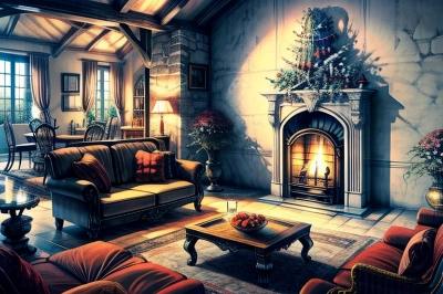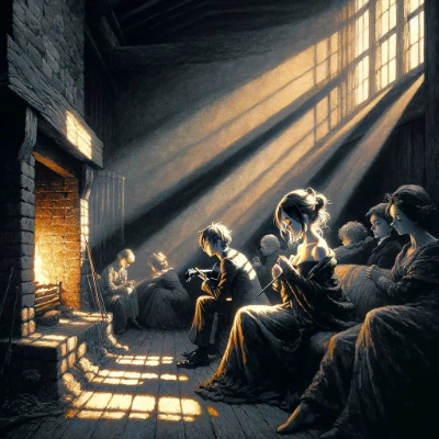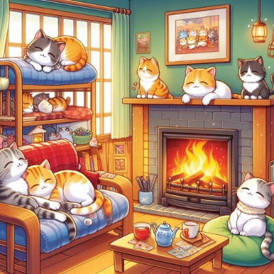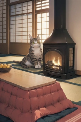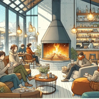 みんなで囲炉裏で暖を取ろう★(4枚)レトロモダン街シリーズ100