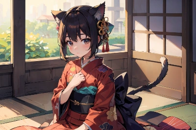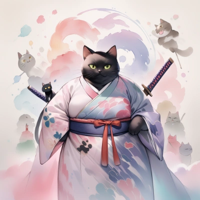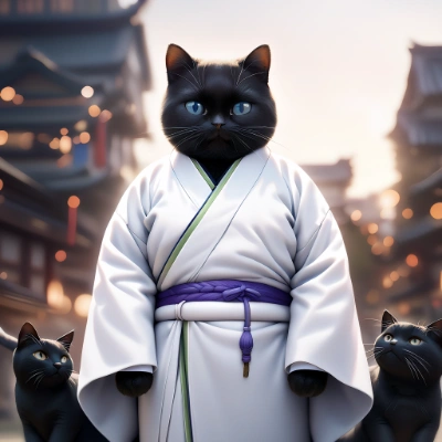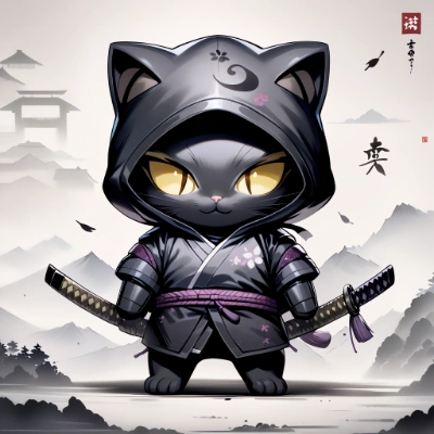 着物ちび黒猫侍