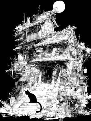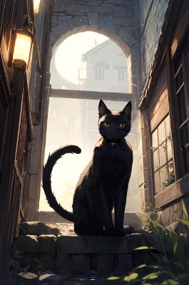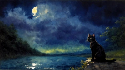 月下の黒猫