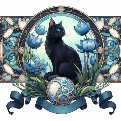 黒猫と青い花