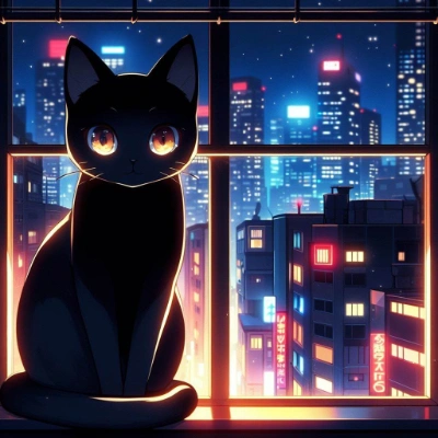 月夜の黒猫