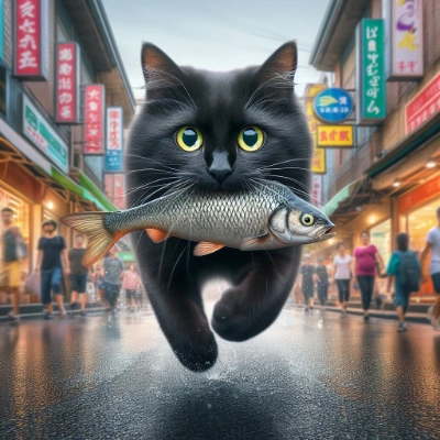 お魚銜えた黒猫猛ダッシュ