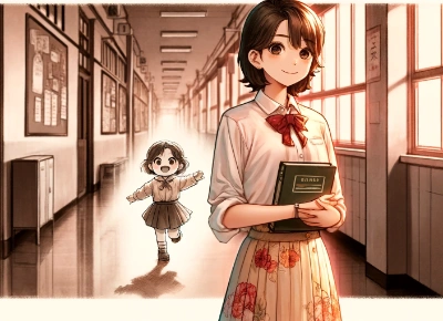 スマホのカメラで七不思議の場所を撮影する部長(階段)