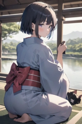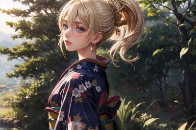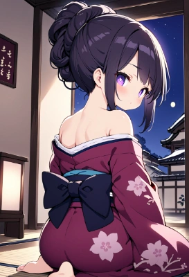 うなじ(和メイド/陸上ユニ/夜桜着物)