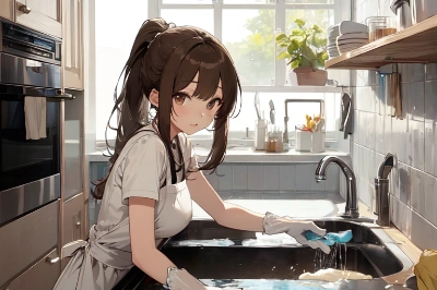 ゴム手袋をした主婦