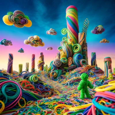 輪ゴムが紡ぐアートな世界のイラスト