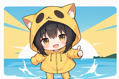ゴム製完全防水ネコ耳ラバーコートだニャ!
