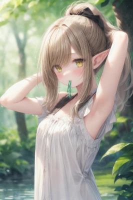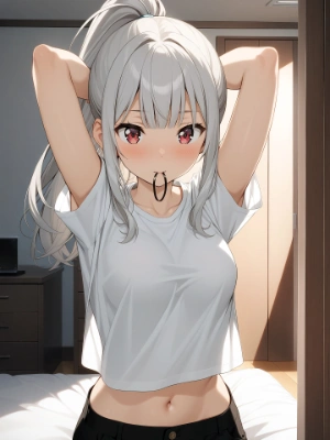 Y, ヘアゴムを咥えている感じ