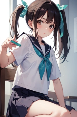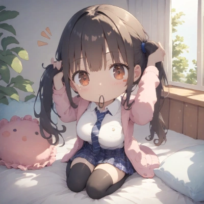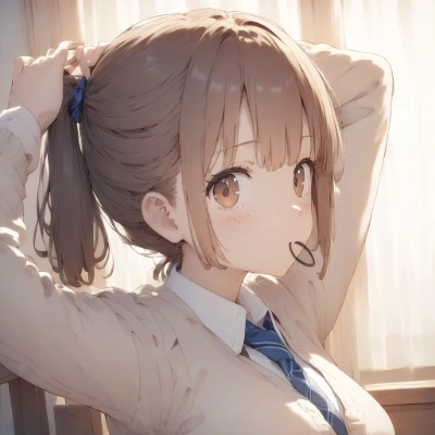 ヘアゴムを結ぶJK