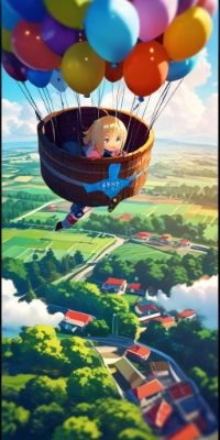 風船で空を飛ぶよ♪